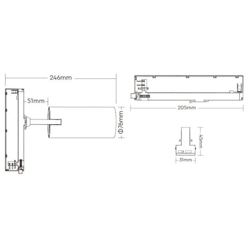 Medföljer Spotlight för 3-fas skena med inbyggt stöd för Zigbee. Köp till fjärrkontroll om det önskas